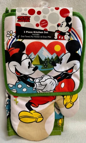 Disney Mickey Minnie Mouse Towel Oven Mitt Potholder Set Green Rainbow Mountains