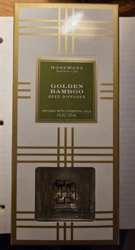 Homeworx Slatin +Co Golden Bamboo Reed Diffuser New