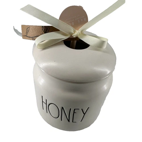Rae Dunn Ceramic HONEY Pot Jar w/Wooden Honey Dipper 4.5” NEW With Tag Farmhouse