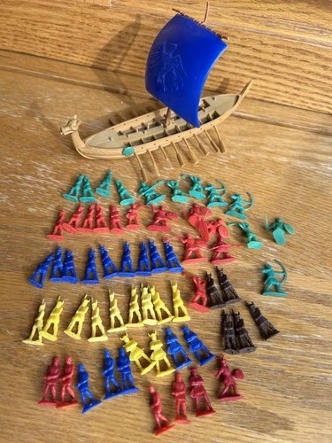 Giant Toys 1960s Vikings & Dragon Ship LOTS of Plastic Figures Hong Kong 1/72