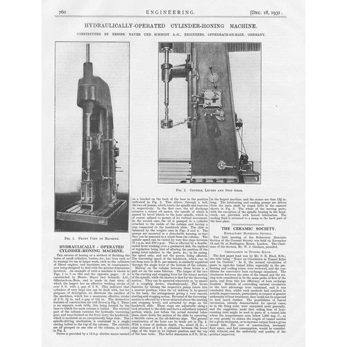 Hydraulically Operated Cylinder Honing Machine 2x Vintage Prints 1931