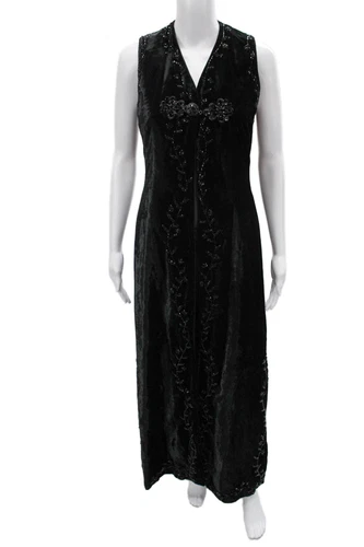 Dolce & Gabbana Women Maxi Vest Black Velvet Floral V Neck Sleeveless Size 40