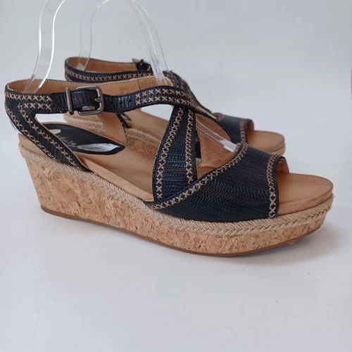 Nurture Cork Wedge Sandals Womens size US 9 Black Lilithe Cross Stich Detail
