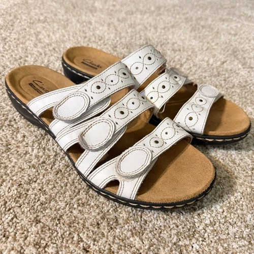 Clarks Collection Womens White Leather Leisa Cacti Slide Sandals Size 10W