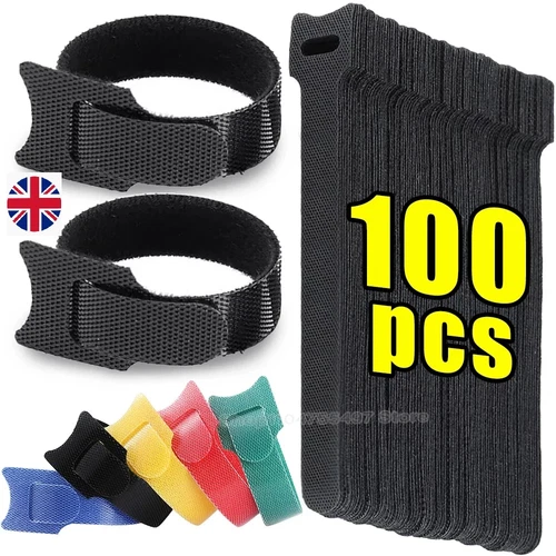 100xReusable Ties Velcros Hook and Loop Fastener Tape Nylon Cable Ties Straps..