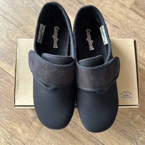 Cosyfeet Women’s Black Hook and Loop Fasten Slipper Shoes. Size 6