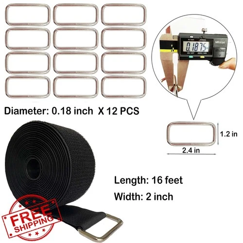 2"x16ft Hook Loop Cable Straps, 12 Buckles, Black Nylon Tie Downs