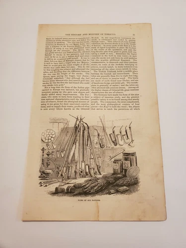 Pipes of All Nations & The Hookah Tobacco Smoking c. 1855 Engraving