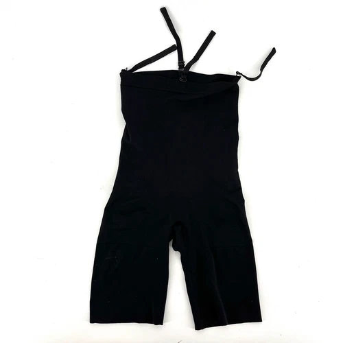 Spanx black open bust mid thigh shapewear hooks attach to bra (large)