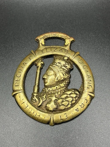Vintage Queen Elizabeth I Horse Brass Scepter Crown Harness Medallion