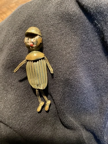 Jockey Brooch Pin Brass Jewelry Paint Face Chain Legs Horse Racing AS IS