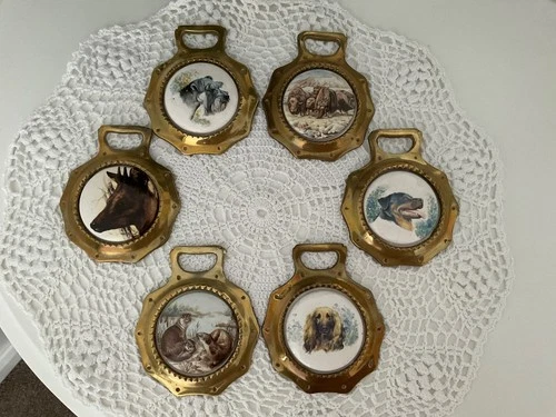 6 x vintage mid century ceramic horse brasses dogs animals job lot