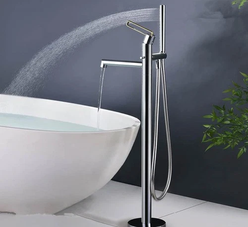 Floor Free Standing Faucet Mixer Single Handle Hot Cold Water Mixer Chrome+Gold