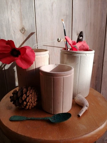 3 Vintage Stone Jars Crock Pots Antique Jam Jars Interior Decor Vases.