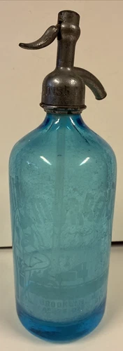 Vtg MURRAYS HOME SERVICE Brooklyn NY dancing girl 25oz blue Glass Seltzer Bottle
