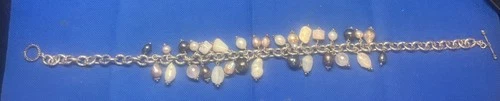 Martha Vineyards Sterling Silver Pearl, Gemstone Charm Toggle Bracelet #234