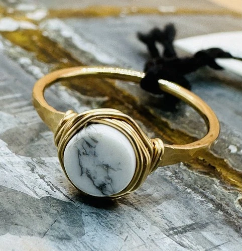 14k Gold Fill Natural Howlite Stone Ring Size 5.75 Minimalist Boho Handcrafted