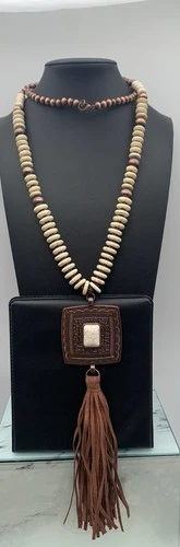 Copper Tone And Faux Howlite Boho Tassel Pendant Necklace 32 Inches