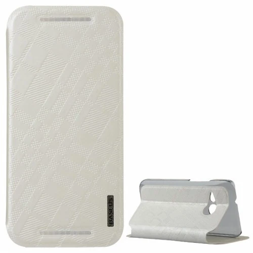 Flip Case Business Cover STAND BOOK HTC One mini 2 White Faux Leather