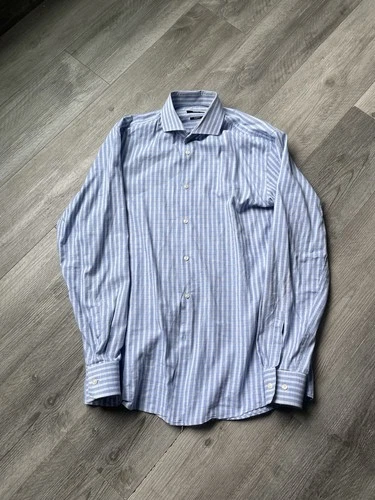 Hugo Boss Blue Gingham Striped Sharp Fit Button Down Shirt 16 34-35