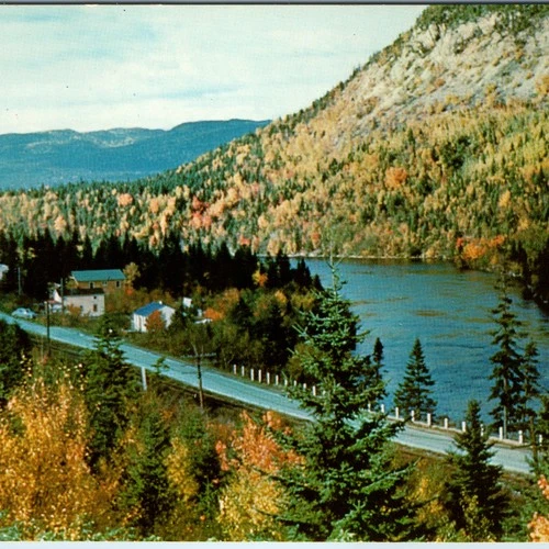 c1960s Corner Brook Newfoundland Postcard Entrance Humber River Autumn Foliage