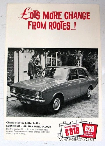 ROOTES HILLMAN Humber SUNBEAM Singer Car Colour Schemes Leaflet Jan 1968 #9320/H