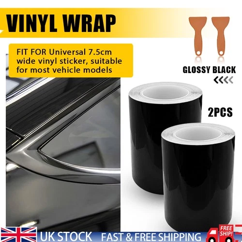 2x De-chroming Chrome Delete Vinyl Wrap Tape 5m*7.5cm Wrapping Vinyl Gloss Black