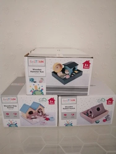 Little Town Wooden Toy Sets - Hamster Run, Dog Kennel, Rabbit Hutch