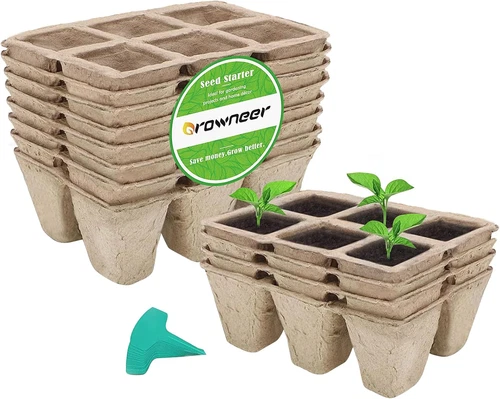 72 Cells Peat Pots Seed Starter Trays – 12 Biodegradable Seedling Kit w/ Labels