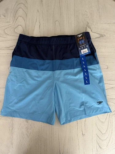 New~Speedo~Mens~Hydro Tech Volley~UPF~Swim Shorts/Trunks~Blue/Stripe~Sz L(34/36)