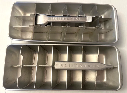 Vintage Westinghouse Aluminum Ice Cube Trays Set Dual Size Lever #202