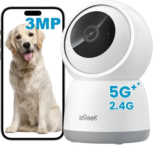 ieGeek 3MP 2.4G/5GHz WiFi Indoor Security Camera, Plug-In Pet Camera with App UK