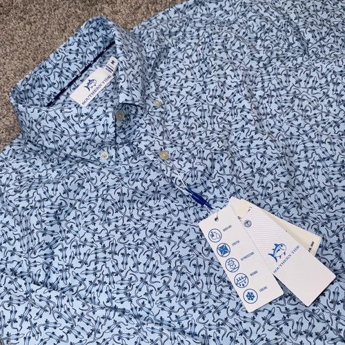 Southern Tide Iguana Glee Sport Shirt Mens brrr Cooling Cerulean Blue XXL NEW