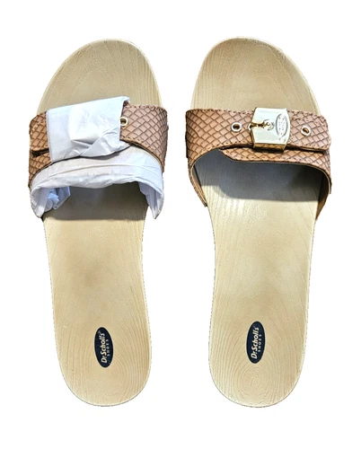 Dr. Scholl's Shoes Women's Classic Sandal Clog Faux Wood Slide Tan Sz. 7 NIB!
