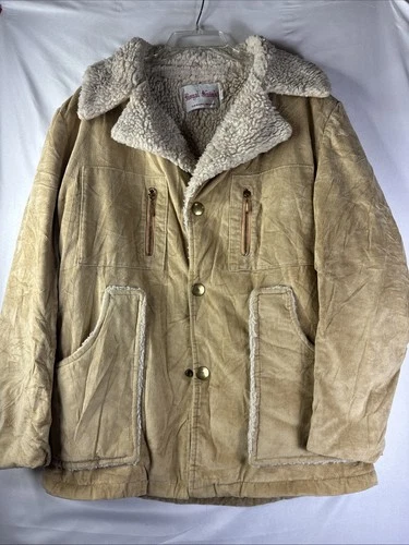Royal Knight Casual Wear Sherpa Lined Jacket Tan Corduroy Button Zip Pocket