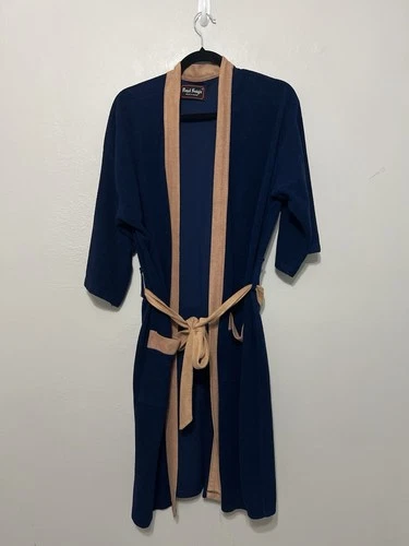 Vintage Classic Navy Blue Royal Knight MEN'S COTTON WRAP AROUND ROBE SIZE L