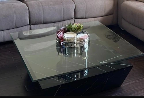 DFS Coffee and Side table Set - Faux marble base with glass top.