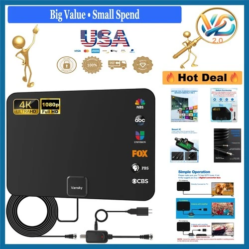 Indoor HDTV Antenna Amplified 1080p Long Range TV Signal 250 Miles