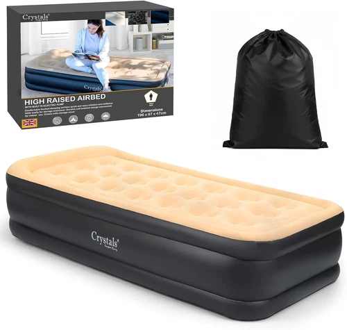 Crystals High Raised Airbed, Inflatable Single Air Mattress with Built-In Electr