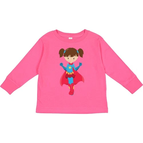 Inktastic Superhero Girl, Cute Girl, Brown Hair, Red Toddler Long Sleeve T-Shirt
