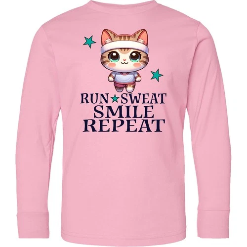 Inktastic Funny Run Sweat Smile Repeat Youth Long Sleeve T-Shirt Jogging Fitness