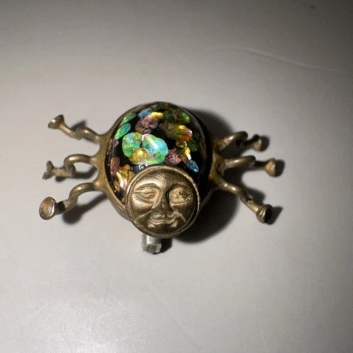 John Kirslis Insect Brooch W/Moon Face & Venetian Glass Body