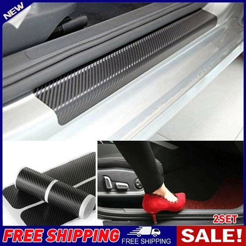 Carbon Fibre Car Door Sill Scuff Protector Plate Sticker Cover Tool+Scraper 8pcs