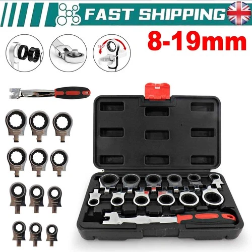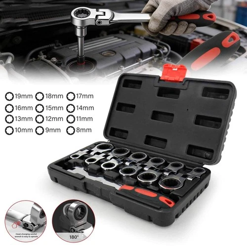 72 Tooth Flexible Combination Ratchet Spanner Set 8-19mm Interchangeable Head