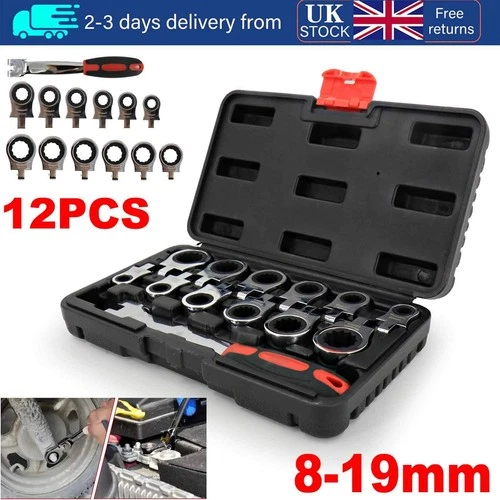 12Pcs 72 Tooth Ratchet Spanner Set 8-19mm Interchangeable Heads Wrench Tools