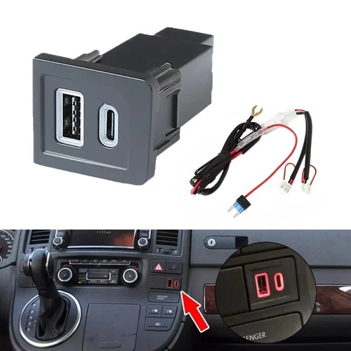 Car Dual USB PD+QC3.0 Charger Socket Socket for Multivan T5 2003-2015