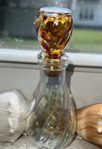 Vintage Iridescent Crystal Glass Perfume Bottle Swirl Design With Stopper Vanity