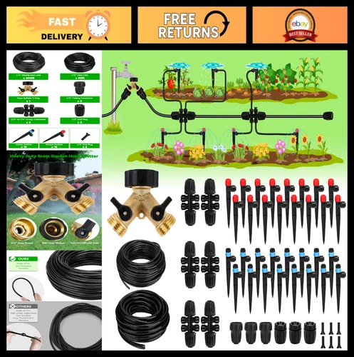 250FT Drip Irrigation Kit - 50FT Main Tube & 200FT Branch Tubing, Brass Splitter