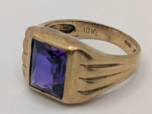 Vintage 10K Yellow Gold ISCO Purple Stone Signet Ring – 5g