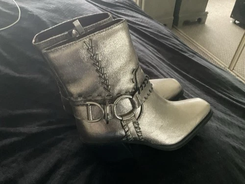 River Island Silver Ladies Cowboy Leather Ankle Boots, Brown, UK Size 4 (EU 37)